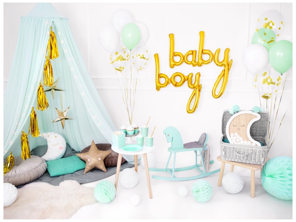 Aby vaše výzdoba nic nepostrádala, neměli byste také zapomenout na další dekorativní prvky. Doplňte tyto krásné balónky papírovými ubrousky, papírovými dekoracemi, girlandami, konfetami na stůl nebo papírovými talíři a papírovými kelímky.