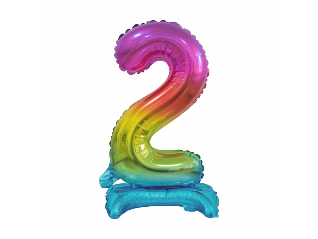 Balónek fóliový číslo volně stojící "2" duhový 38 cm, metalický