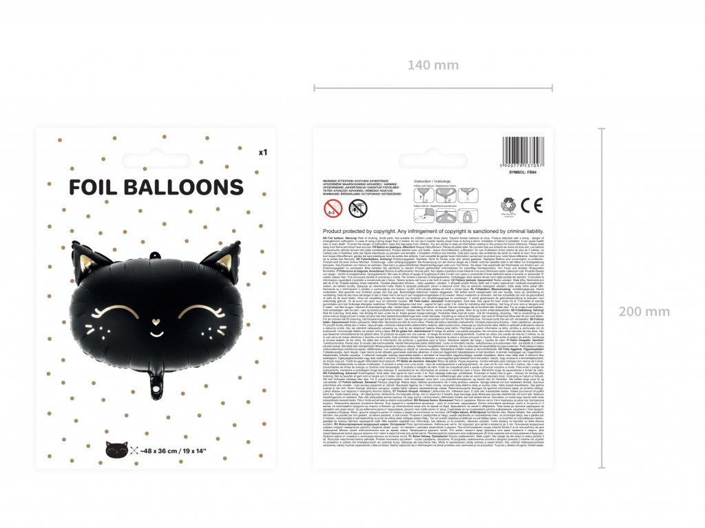 Připravujete tématickou oslavu pro milovníka zvířátek nebo černé barvy? Pak je foliový balonek s motivem této kočky tou správnou volbou. Kočička má roztomilé zlaté zbarvení a tak vypadá jako by předla. Veliká je 48 x 36 cm, zkuste ji obejmout :) Díky zbarvení ji můžete velmi snadno kombinovat s jinými balonky či párty dekorací.