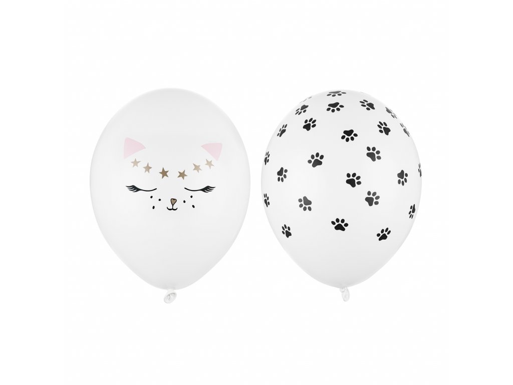 Sada silných latexových balónků s potiskem s motivem kočičky. Tahle sada udělá radost všem malým i větším slečnám. Pravděpodobně i všem velkým milovnicím koček. Sada obsahuje dva pastelově bílé balónky s potiskem ve velikosti 30 cm. Jeden s motivem kočičí tváře a druhý s černými tlapkami.