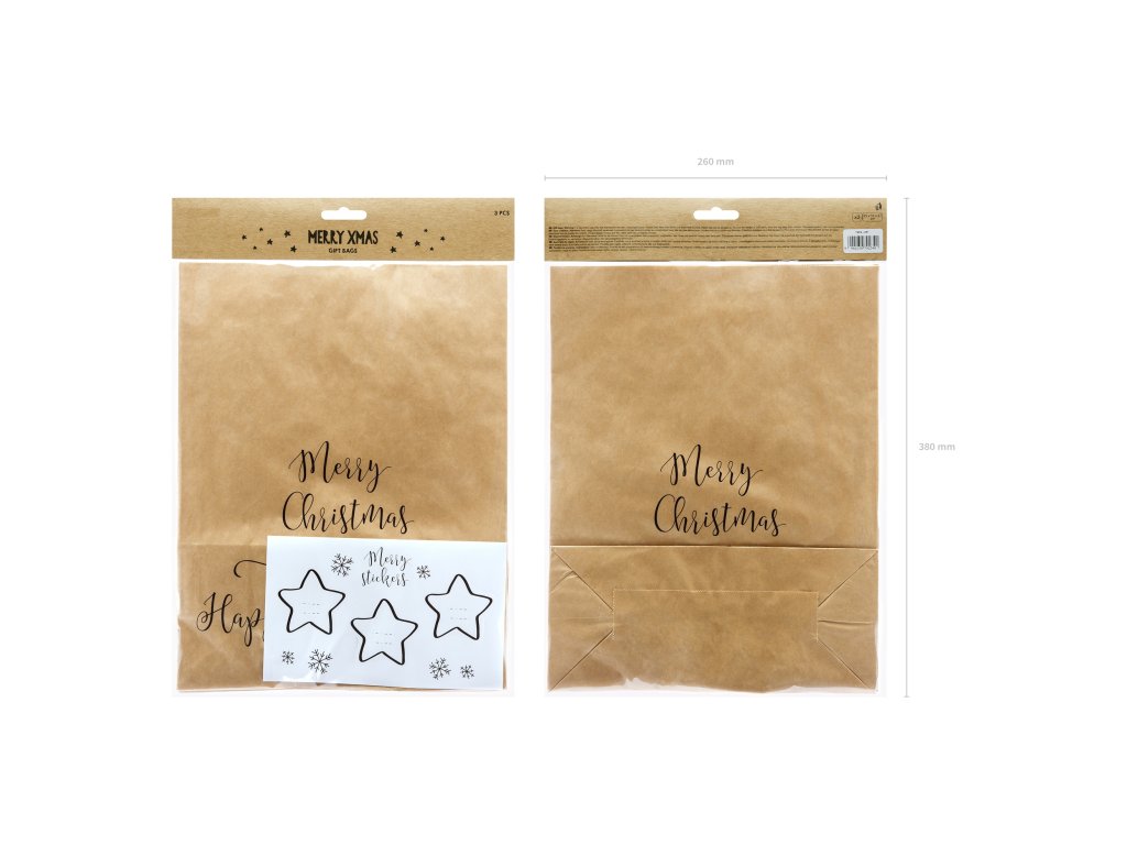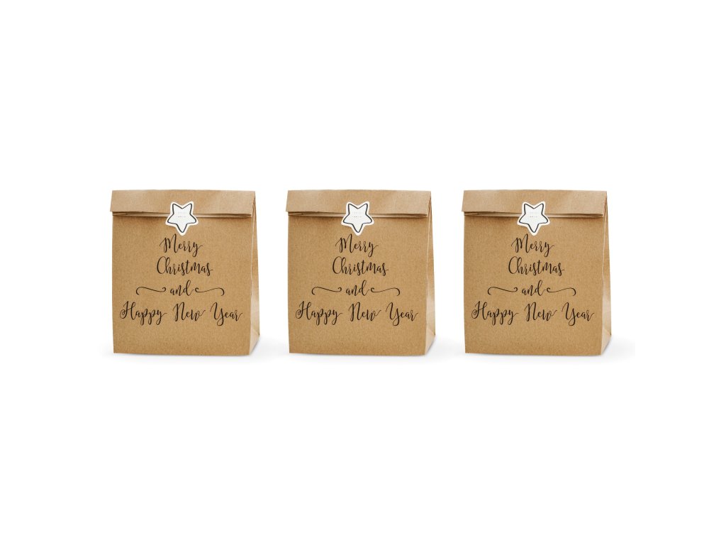 Dárkové sáčky "Merry Christmas and Happy New Year" se samolepkami 25x11x27 cm, 3ks