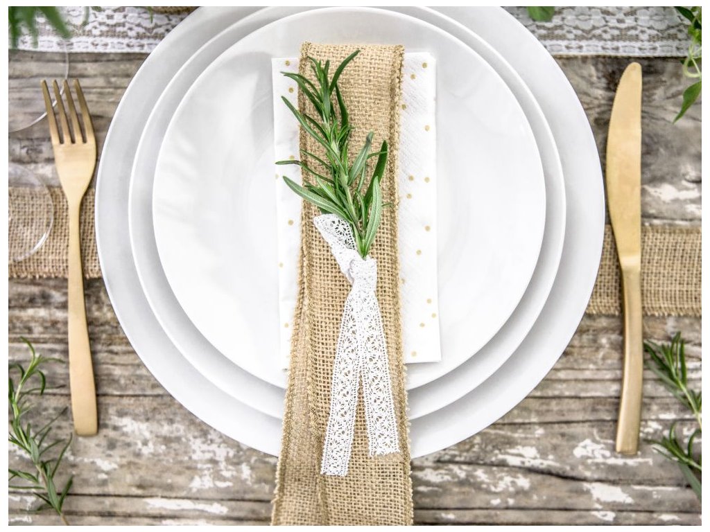 Oslavy a svatby v přírodním stylu můžete doplnit spoustou krásných dekorací z juty, jakou jsou pásky, běhouny nebo motouz. Záleží jen na vaší fantazii. Jutou můžete ozdobit stůl, židle, pozvánky nebo ji použít při výrobě svícnů nebo váz. Tento přírodní materiál vypadá velmi krásně v kombinaci s bílou krajkou a dřevem.