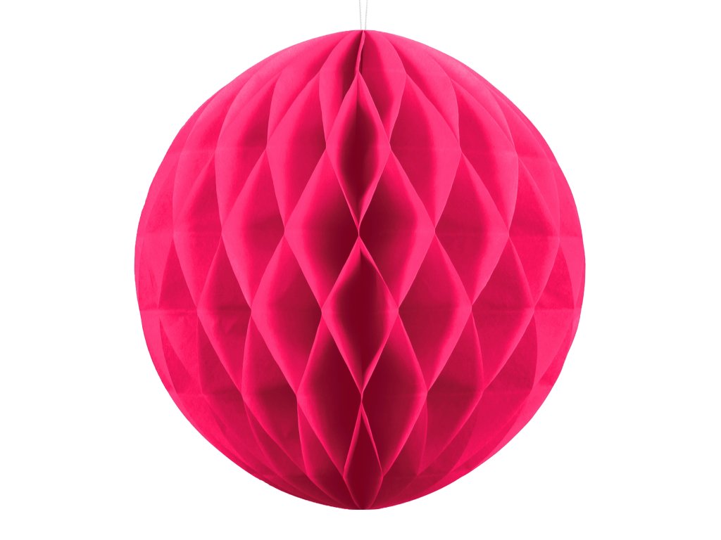 Závěsná dekorace z papíru, kterou je nutné po rozbalení jednoduše složit do tvaru koule. Hodí se jak na svatbu, tak pro narozeninovou oslavu. Tmavě růžová plástvová koule o průměru 20 cm se hodí jak na svatbu tak i narozeninovou oslavu. Dekorační koule je možné kombinovat s ostatními dekoracemi. Jako jsou lampióny nebo rozetami.
