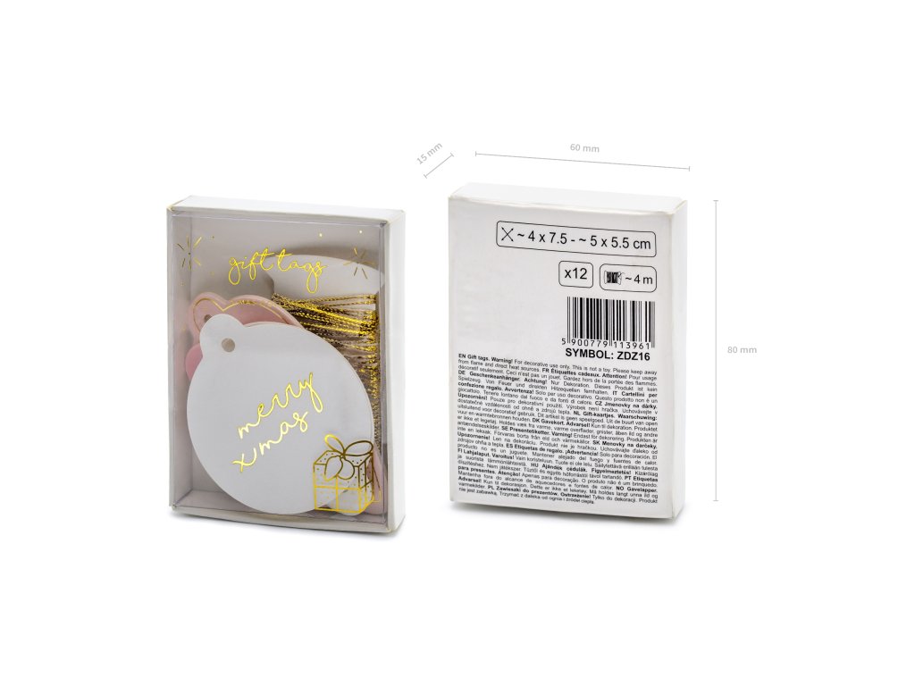 Papírové jmenovky na dárky jsou zbarveny do odstínů růžové a bílé barvy, jejich tvar připomíná vánoční ozdoby a slouží především k tomu, abyste jimi ozdobili vánoční dárky a Ježíšek na ně vepsal jména obdarovaných. V balení najdete 12 kusů a veliké jsou 4 - 7,5 cm x 5 - 5,5 cm, podle tvaru motivu. K dárkům je připevníte pomocí praktického zlatého provázku o délce 4 m.Nehodí se vám zlatý provázek? Nevadí, využijte papírové nebo plastové stuhy z naší nabídky a zlatý provázek si schovejte na jinou příležitost.
