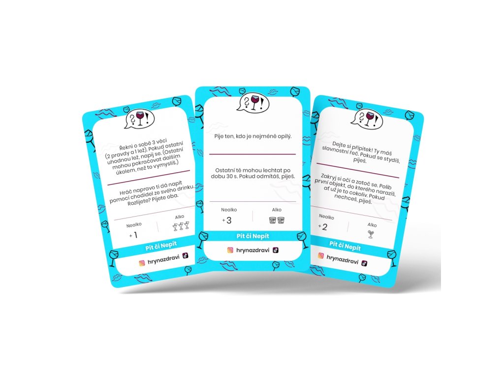 Rozdělte role (moderátor/házející kartu). Vytáhněte kartu, přečtěte úkol nebo otázku. Buď odpovíte dobře, nebo… splníte zábavný trest. A znovu a znovu – než večer skončí.