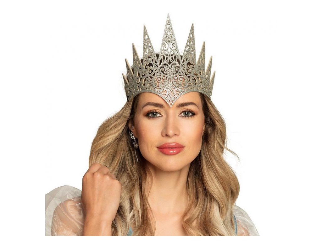 Vstupte do říše zimní magie s touto dechberoucí stříbrnou korunou ledové královny, která okamžitě přenese vaši akci do pohádkového světa. Inspirovaná královnami zimy a pohádkovými bytostmi, tato koruna zaujme svými ostrými hroty i fascinujícím třpytivým vzorem, jako by byla vytesána z ledu.