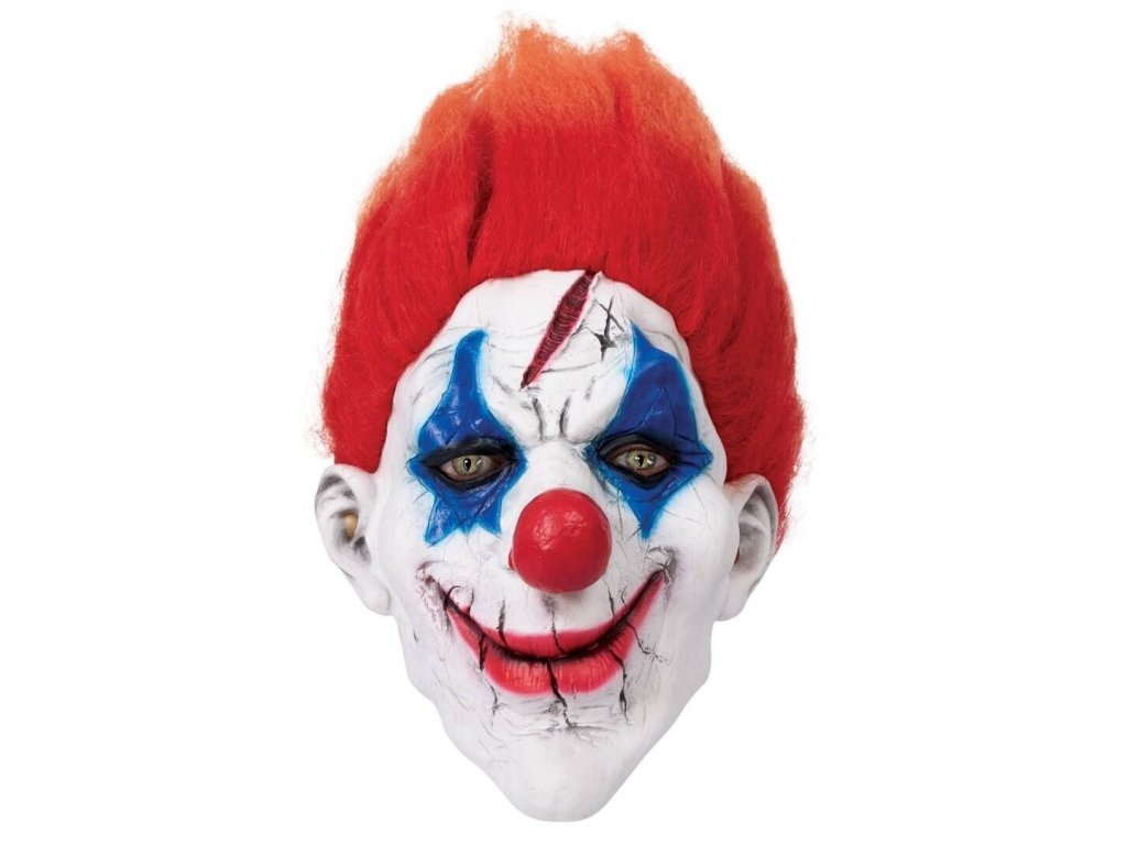 Když se cirkus promění v noční můru, přichází klaun s červenými vlasy – groteskní, šílený a nebezpečně pobavený. Tato latexová maska promění vaši tvář v děsivou karikaturu smíchu s krvavě rudými vlasy, křiklavým líčením a širokým úsměvem, který skrývá temné úmysly.