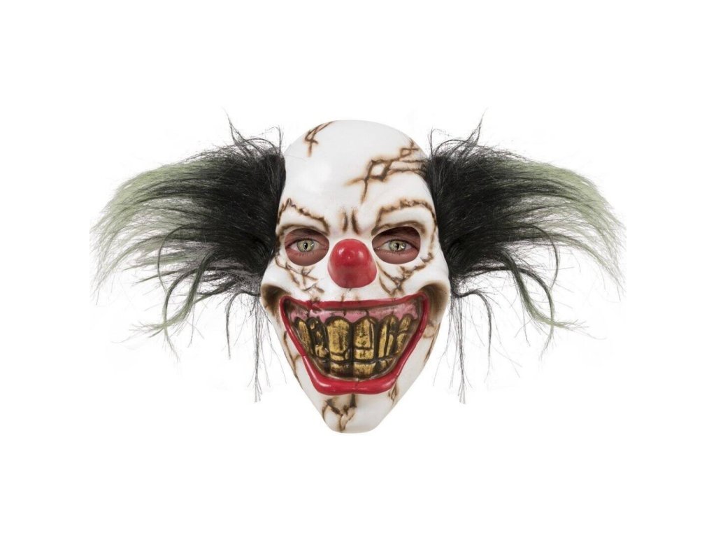 - Zakrývá téměř celou hlavu, tím je zajištěn maximální efekt děsivého převleku a dokonalé ponoření se do role klauna.