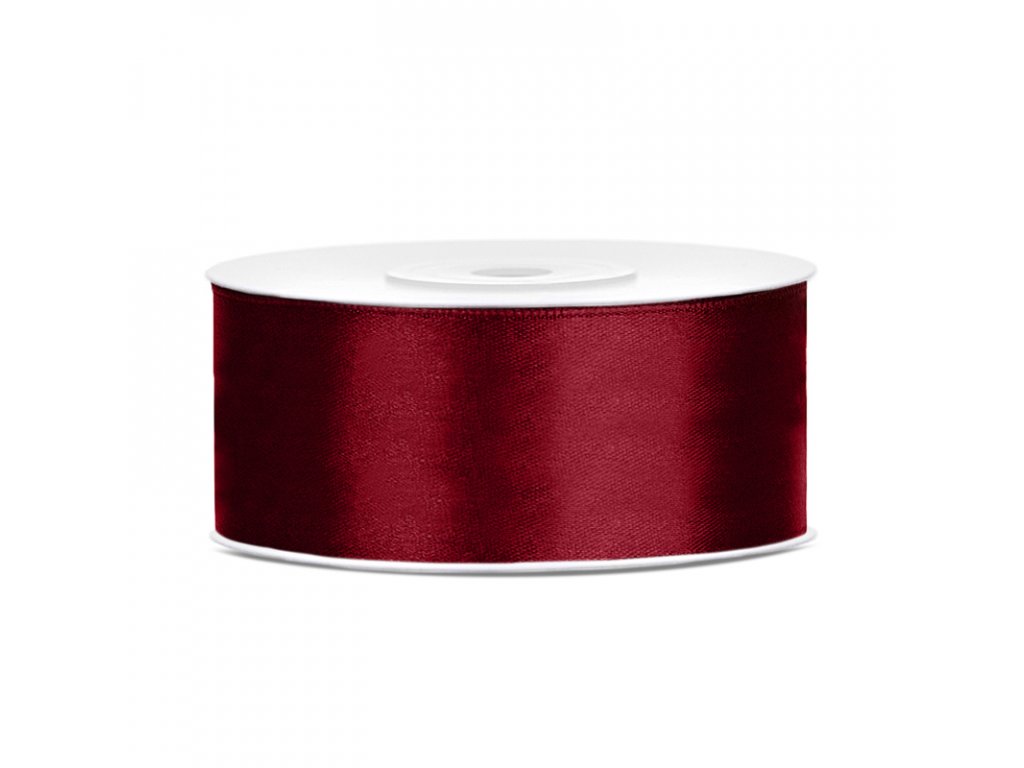 Stuha saténová tmavě červená 25 mm, délka 25 m