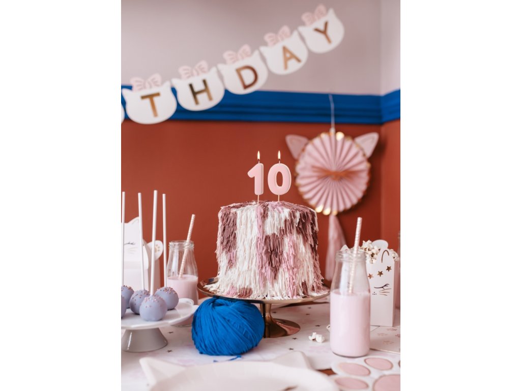 Můžete snadno zkombinovat s dalšími růžovými svíčkami číslicemi a vytvořte libovolné narozeninové číslo – od 10 až po 100! Svíčky krásně ladí s dortem, balónky, pompomy, bannery nebo girlandami, ubrousky i dalšími dekoracemi.