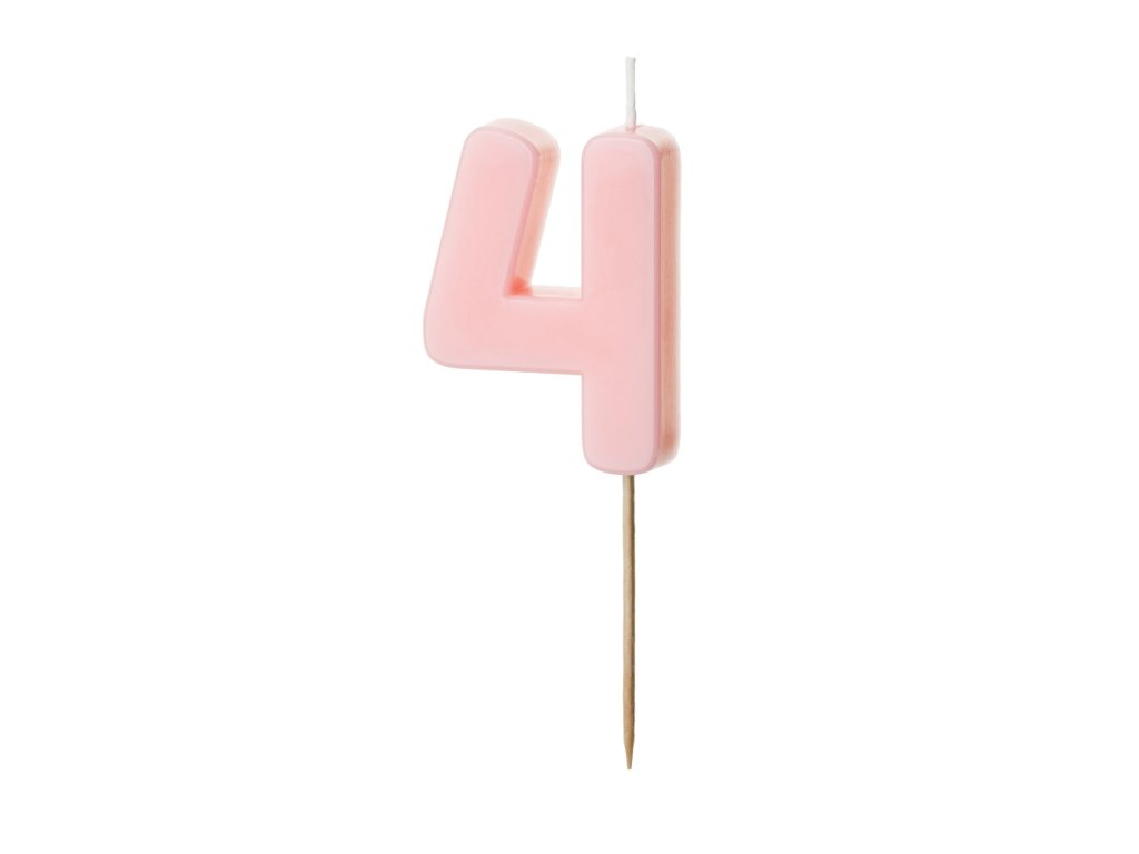 Čtvrté narozeniny? Čtvrté výročí? Ať už slavíte jakoukoliv čtyřku, tato světle růžová svíčka ve tvaru čísla 4 dodá dortu jemný dotek elegance. S výškou 5,5 cm krásně vynikne na dětském i slavnostně laděném dortu, a to jak samostatně, tak v kombinaci s dalšími čísly.