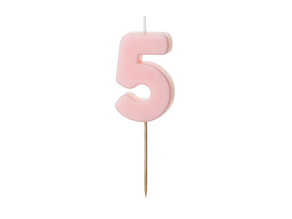 Svíčka na dort světle růžová "číslo 5", 5,5 cm