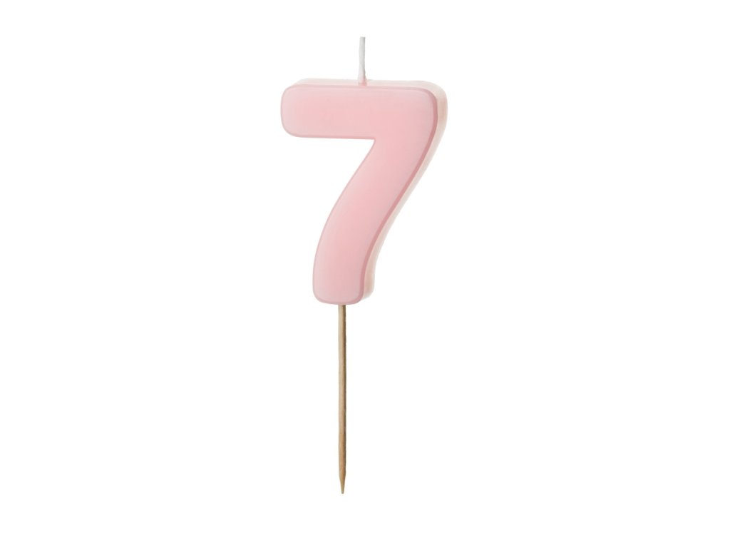 Sedmička, šťastné číslo každé oslavy. Tato světle růžová svíčka ve tvaru čísla 7 v sobě spojuje jemnost, hravost a slavnostní nádech. S výškou 5,5 cm se skvěle vyjímá na narozeninovém dortu a dokonale ladí s dětskou i elegantní oslavou.