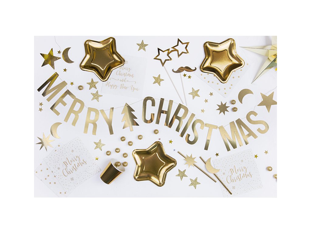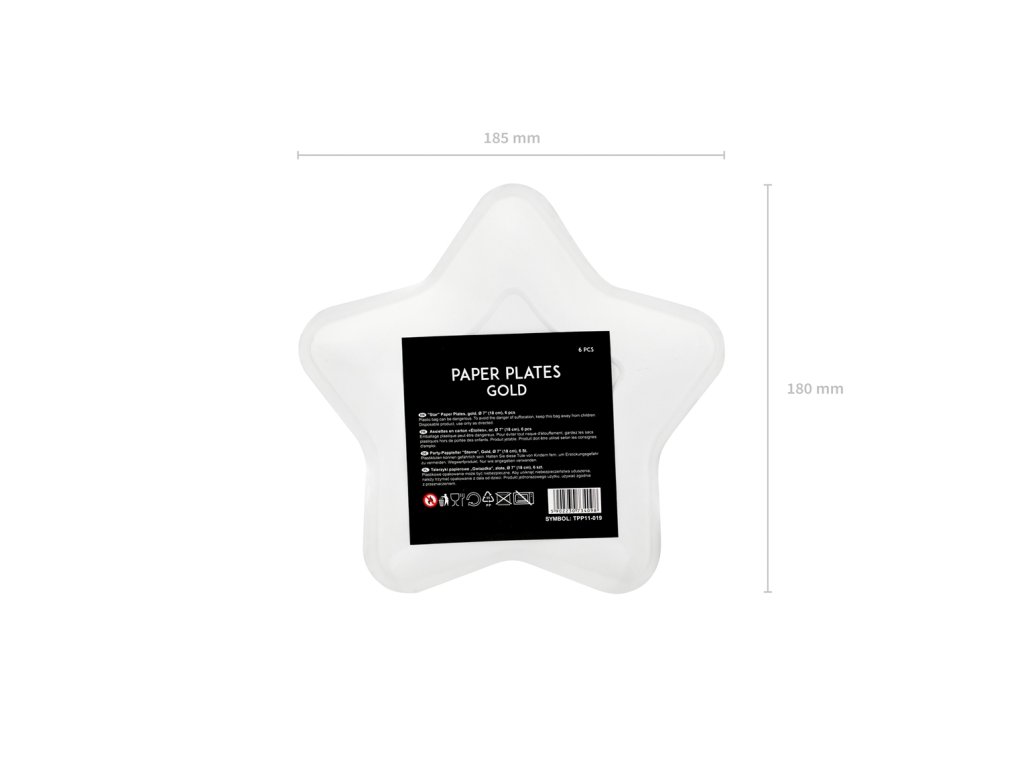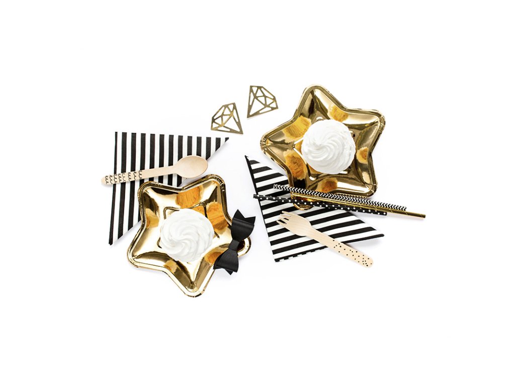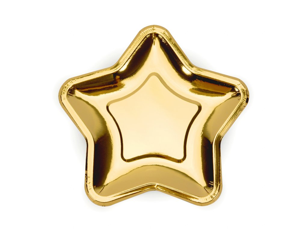 Talíře papírové zlaté hvězda 18 cm, 6 ks